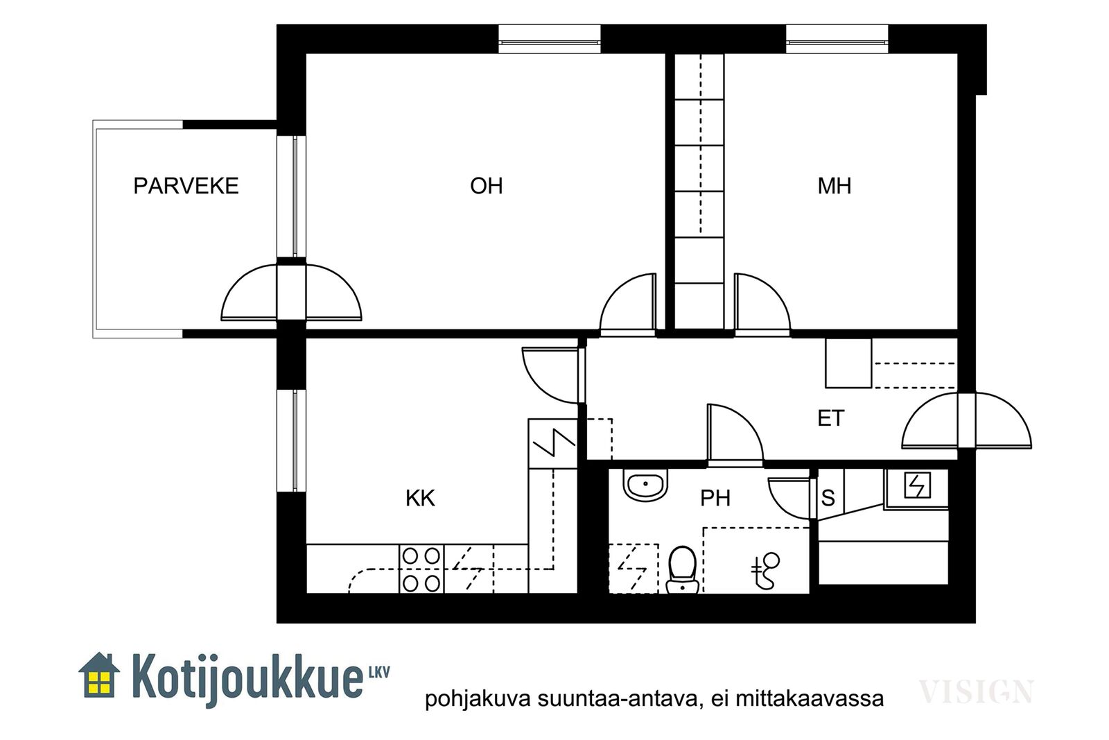 - Lämmönjakohuone, sähköpääkeskus, talon varasto ja 4 kpl WC.