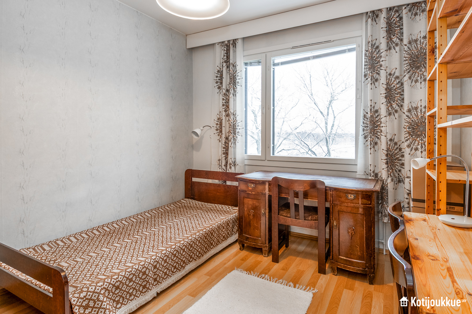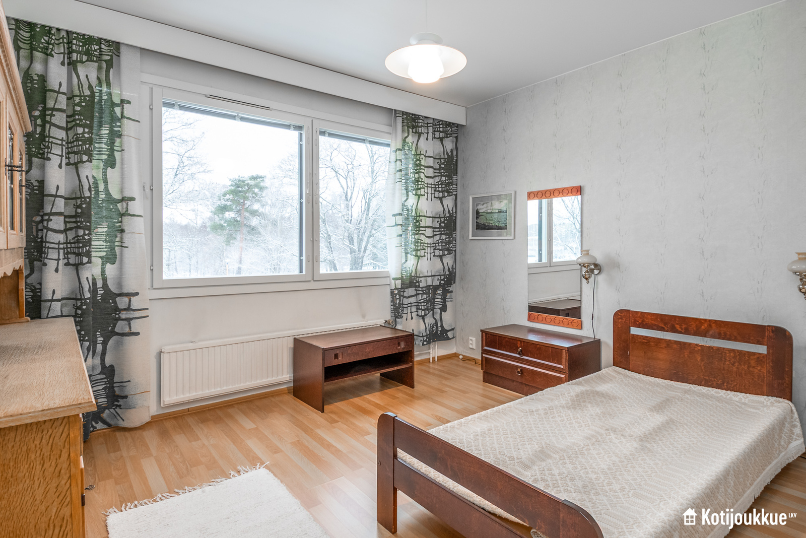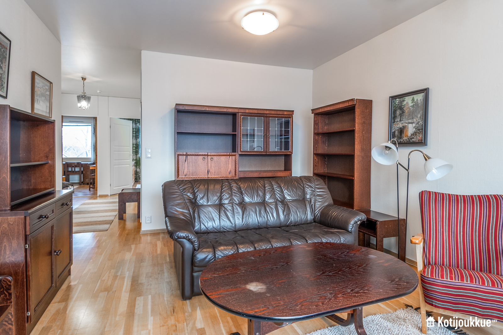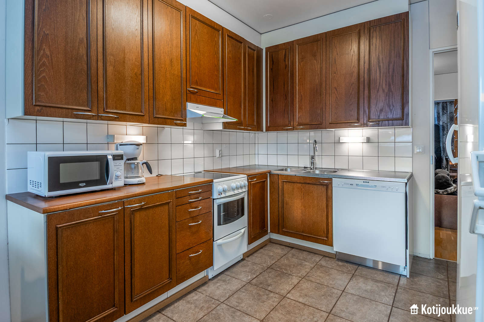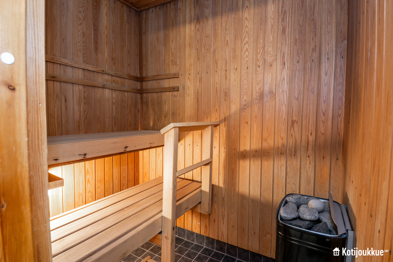 Tämä asunto omaa todella toimivan ja tilavan pohjaratkaisun. Olohuone yhdistyy ruokailutilan kautta suoraan keittiöön ja isot ikkunat tekevät tilasta todella valoisan. Hyvän kokoiset makuuhuoneet säilytystiloineen ja kodissa on varsin tilava kylpyhuone yhdistettynä omaan saunaan. Säilytystarpeet on huomioitu huoneiston useiden kaapistojen sekä vaatehuoneen muodossa.