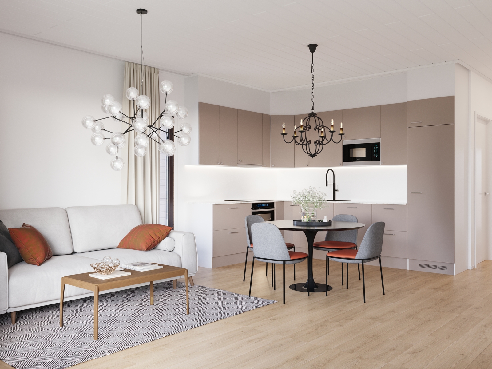 Asunnot ovat kooltaan 69,5 m² ja ne on suunniteltu tarjoamaan toimiva ja moderni pohjaratkaisu kompaktissa koossa. Kodin sydän on avara ja valoisa oleskelutila, jossa suuri ikkuna-ala tuo sisään runsaasti luonnonvaloa. Tilaa täydentävät laadukkaat pintamateriaalit ja käytännölliset ratkaisut, jotka tekevät asumisesta vaivatonta ja miellyttävää.