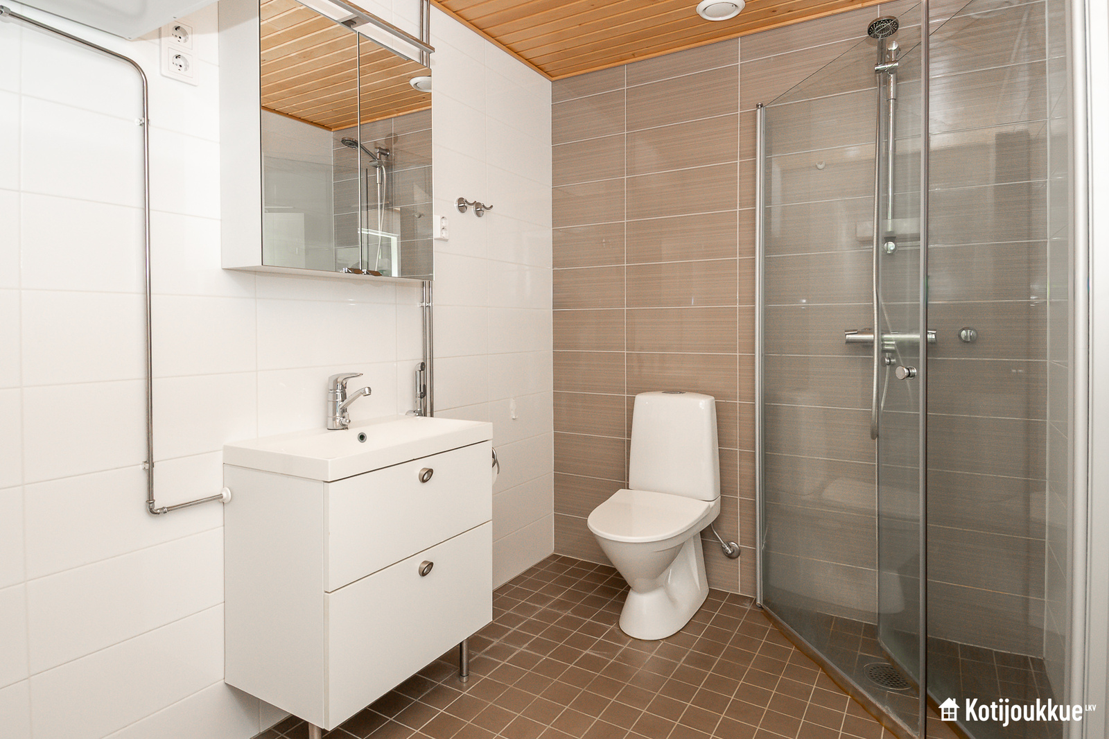Tämän kodin kruunu on ehdottomasti oma terassialue, jonne mahtuu kivasti nauttimaan, vaikka aamukahvit tai muuten vain viettämään aikaa, mikä luo asumiseen hyvinkin rivitalomaisen tunnelman.