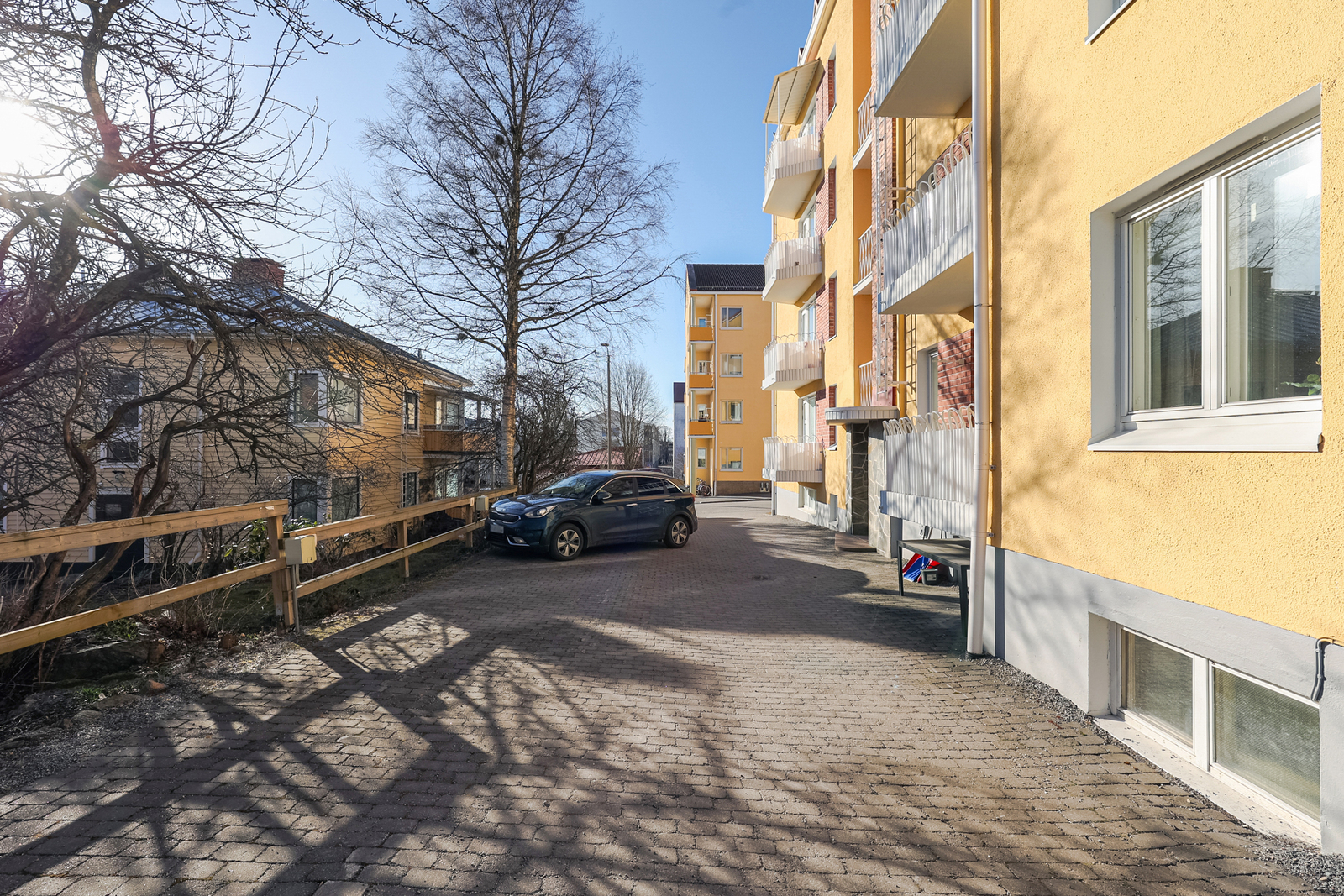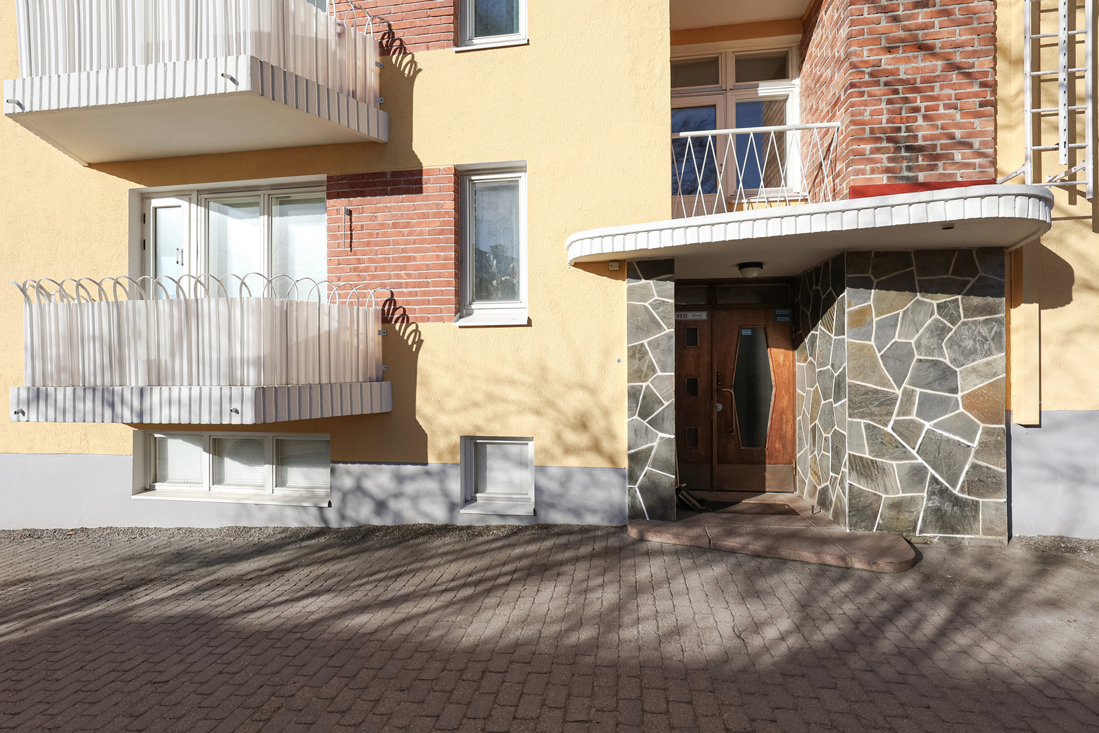Det stabila stenhus från 50-talet har tjocka väggar och en lugn atmosfär. Bostadsbolaget ligger på egen tomt och har genomgått omfattande renoveringar, bland annat av avloppen och fasaden, och värms bekymmersfritt med fjärrvärme.