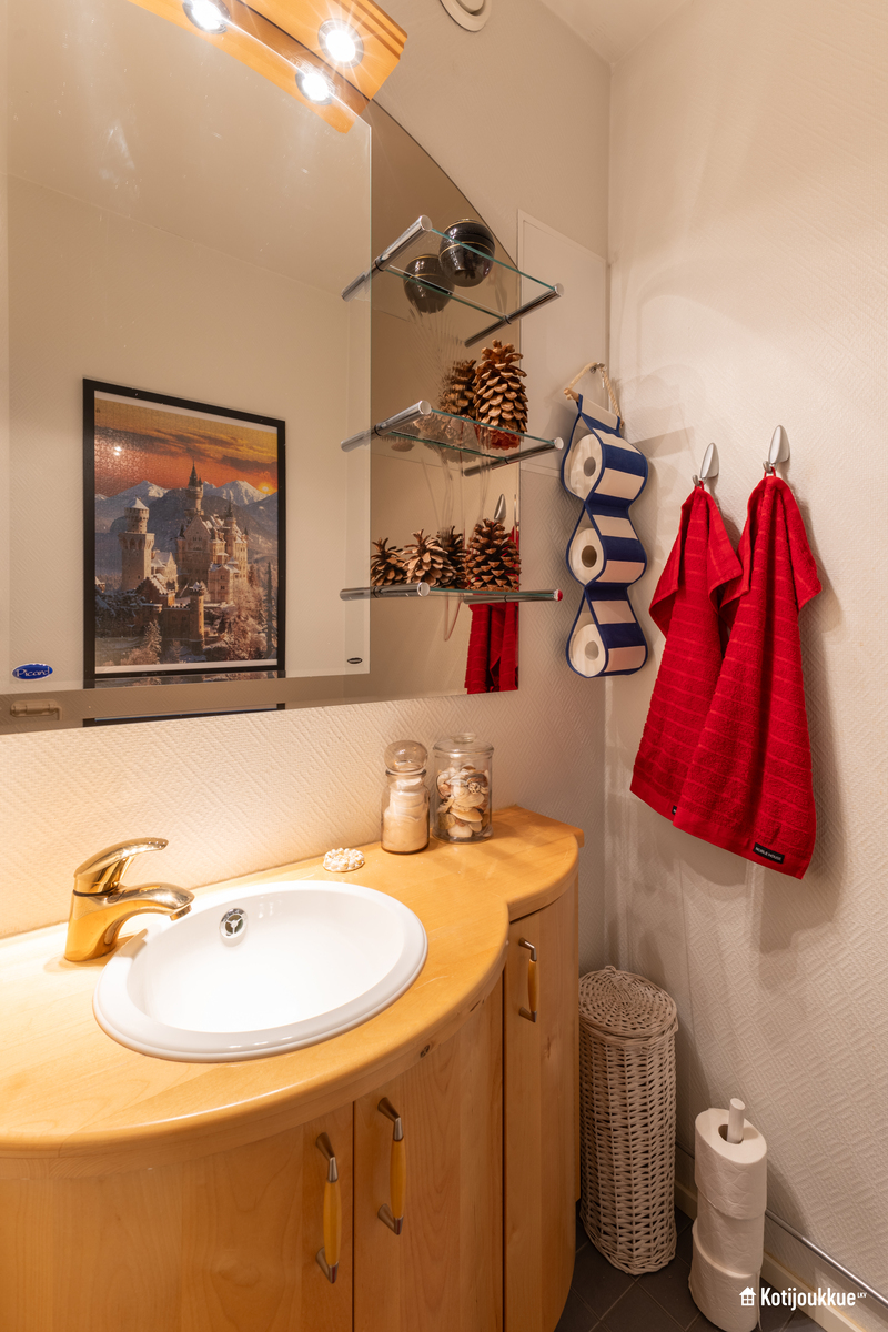 Makuuhuoneet ovat reilun kokoisia, ja oma sauna tuo asumiseen lisämukavuutta. Taloyhtiö lämpiää kaukolämmöllä, eikä tiedossa ole merkittäviä tulevia remontteja.