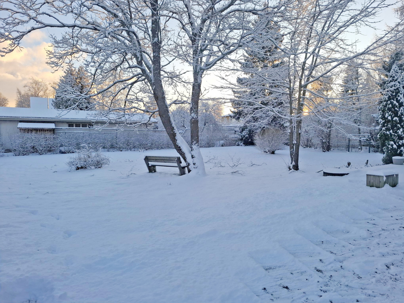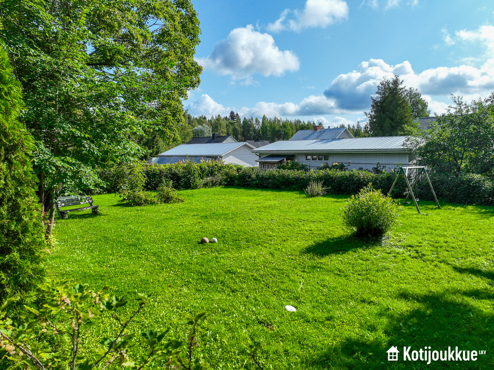Vehreä pihapiiri, puita ja pensaita. Tonttia ympäröi kauttaaltaan suojaisa pensasaita taaten hyvän näkösuojan naapureihin. Piha antaa perheen pienimmille runsaasti turvallista leikkitilaa, lemmikkejä unohtamatta. Tontilla on myös lukuisia paikkoja tehdä kukkaistutuksia, rakentaa aurinkoterassia tai vaikka perunamaan. Autotallirakennukselle on rakennuslupa valmiina (kerrosala 63m2/kokonaisala 117m2).