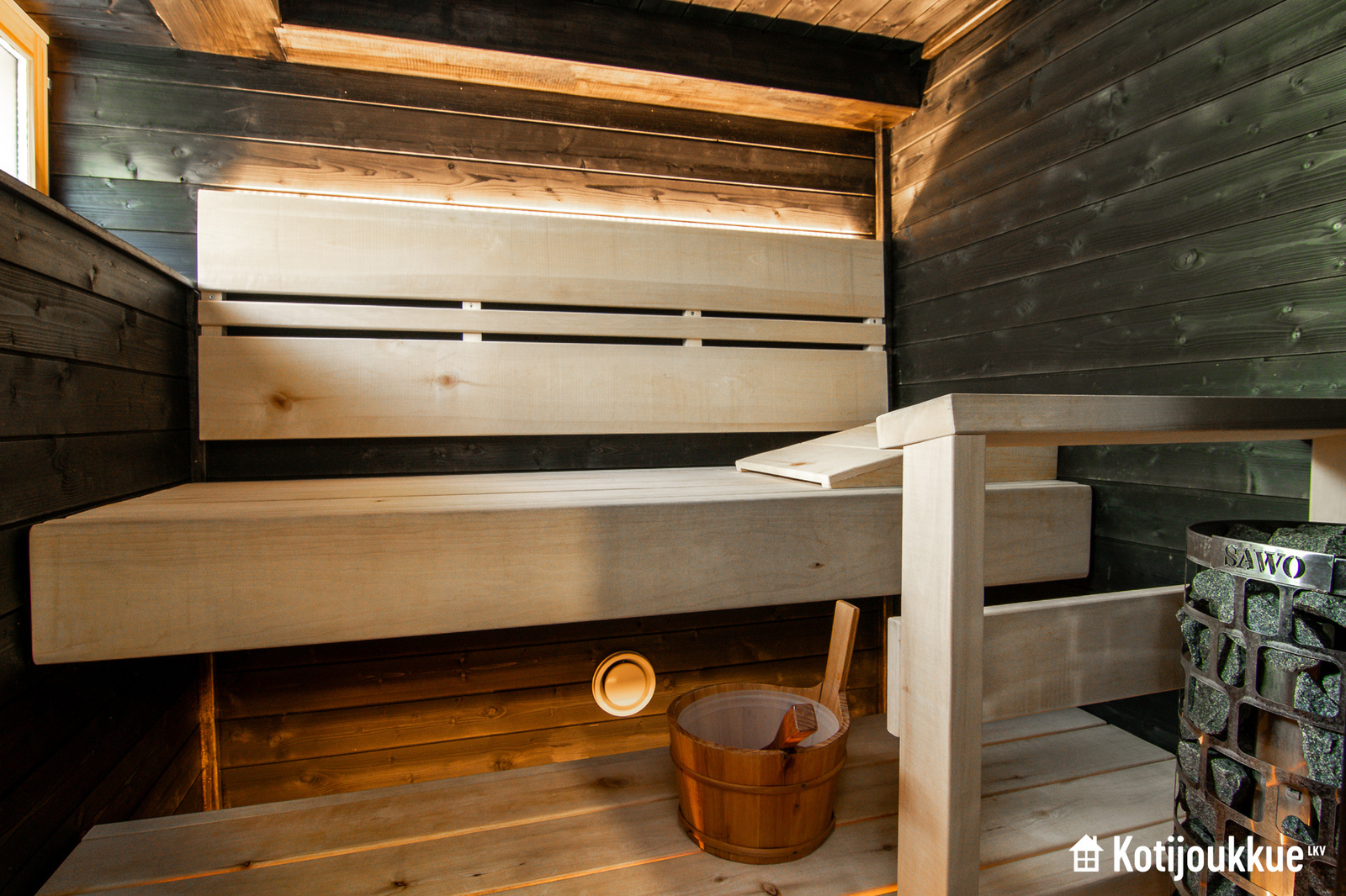 Täysikorkeassa kellarissa sijaitsee tyylikäs saunaosasto, jonka kauniit materiaalit sointuvat täydellisesti toisiinsa ja hulppeat neliöt tekevät tunnelmasta kylpylämäisen arvokkaan. Monikäyttöinen oleskelutila taipuu moneen käyttöön perheen tarpeiden mukaan, vaikka omaksi kuntosaliksi tai lasten valtakunnaksi.