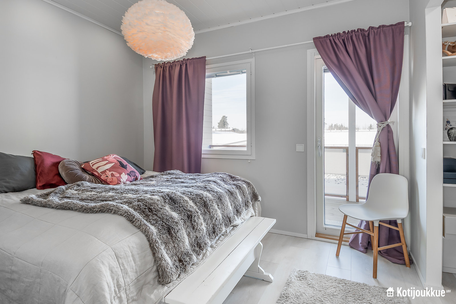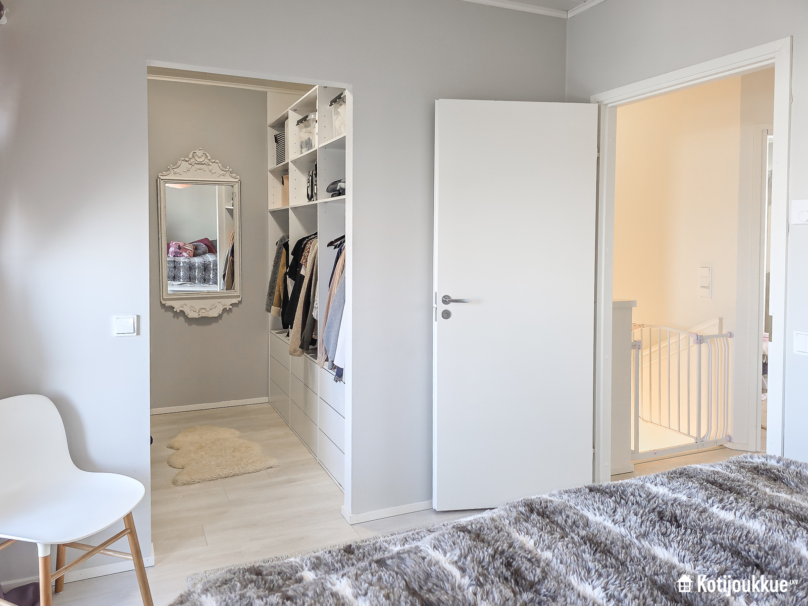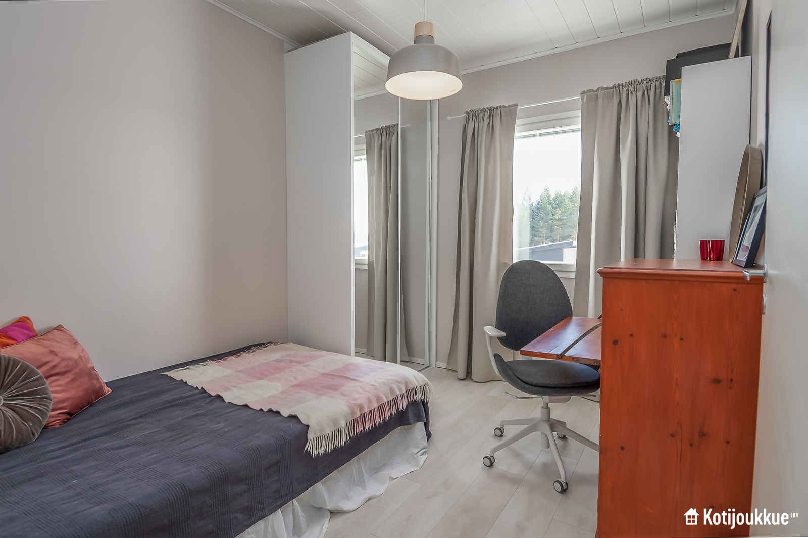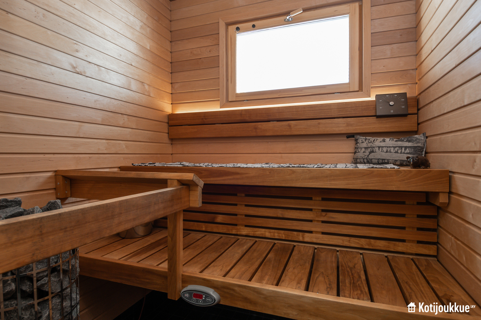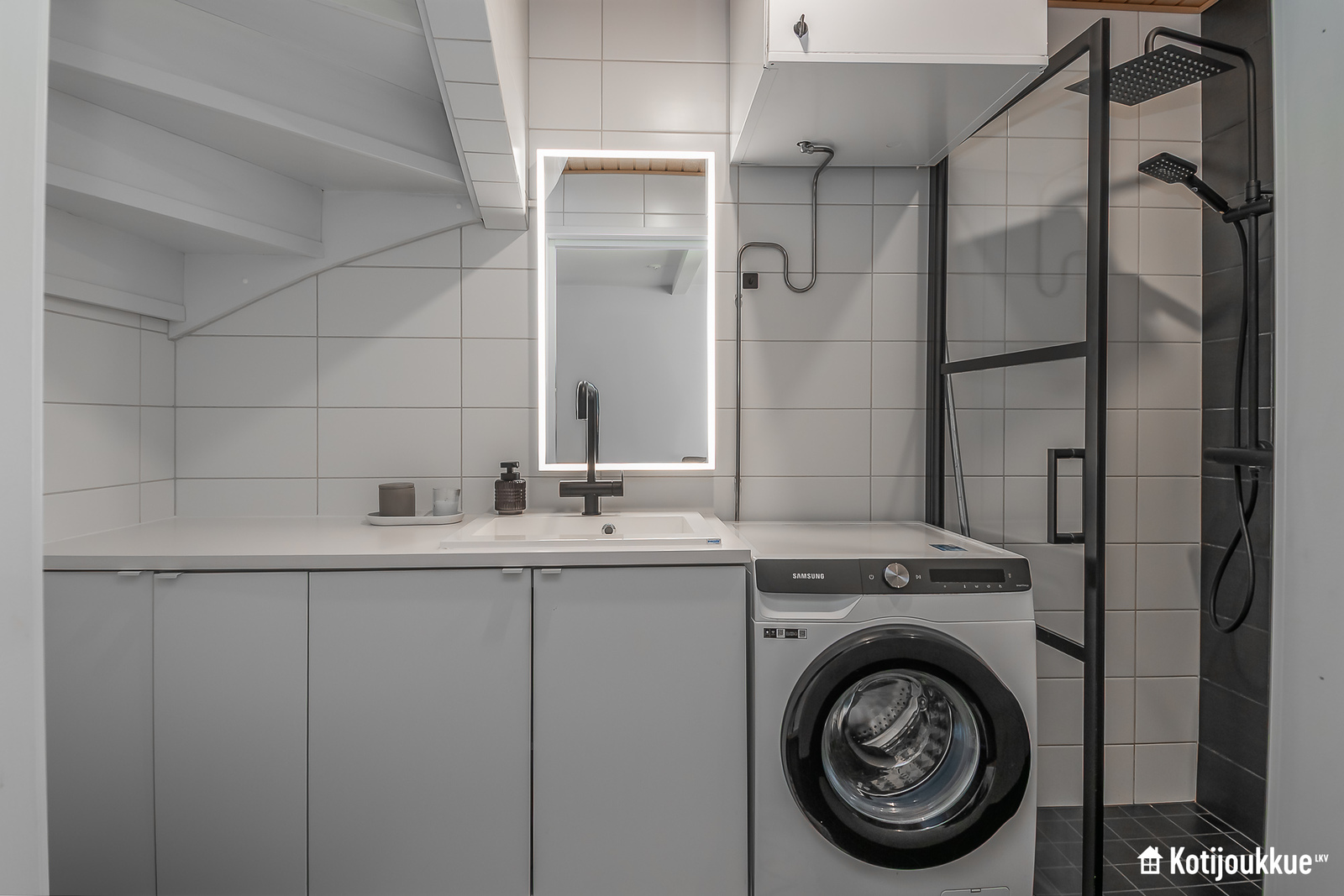 Ensimmäisessä kerroksessa keittiö yhdistyy valoisaan ja avaraan olohuoneeseen. Sauna, kylpyhuone ja kodinhoitohuone samassa tunnelmallisessa tilassa. Yläkerrassa erillinen kylpyhuone/wc, kolme makuuhuonetta joista yksi isolla vaatehuoneella ja omalla parvekkeella. Lisäksi paljon säilytystilaa lisäämässä asumismukavuutta.