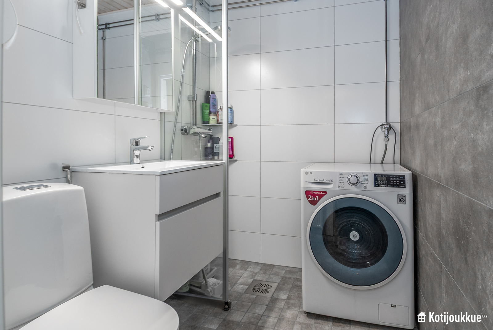 pesukoneliitäntä, lattialämmitys, wc-istuin, suihku, peili