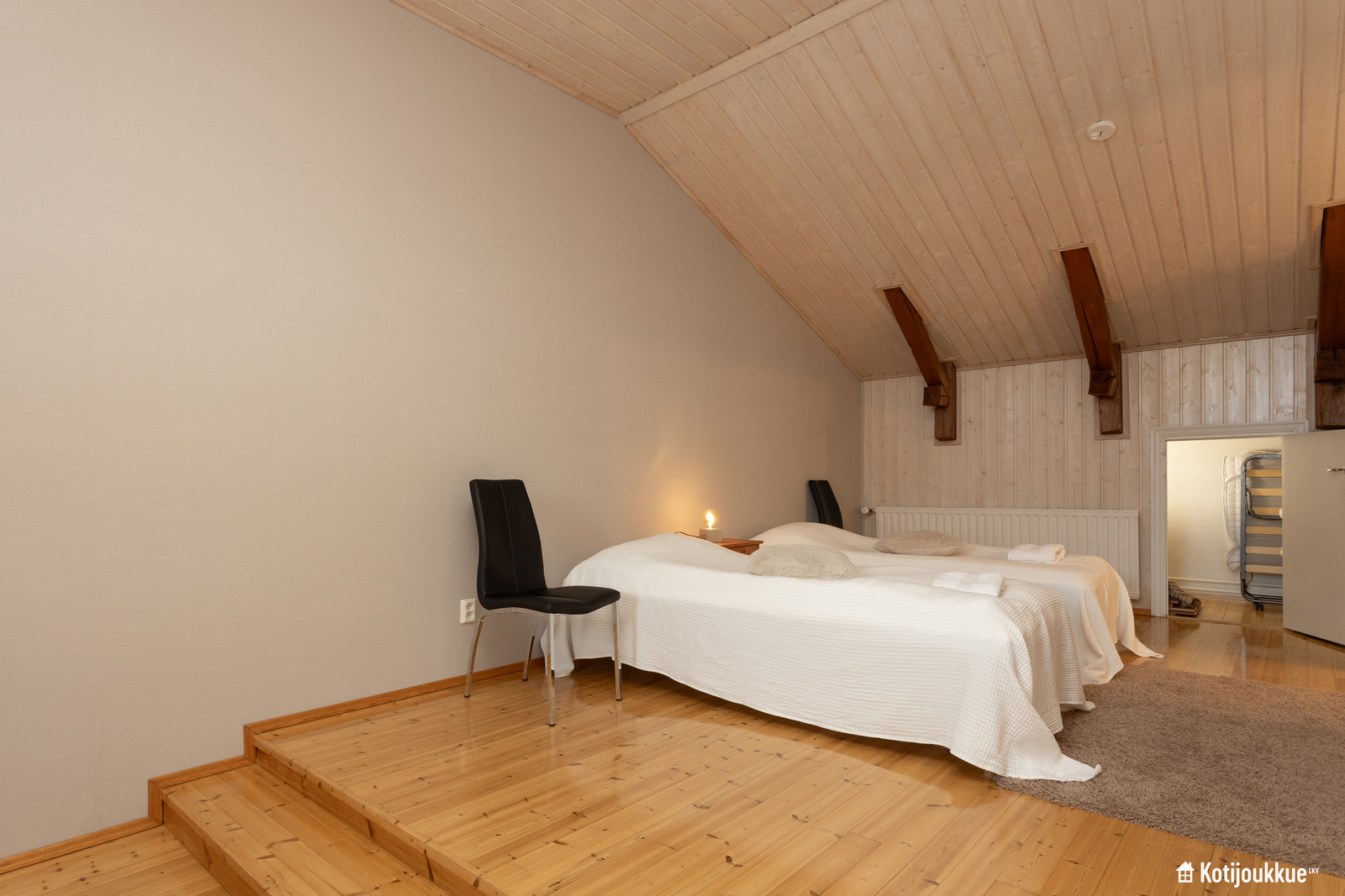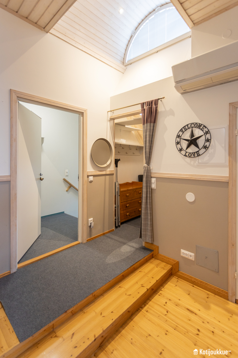 Kauniit lakatut puulattiat, korkea huonekorkeus ja oma sisäänkäynti.