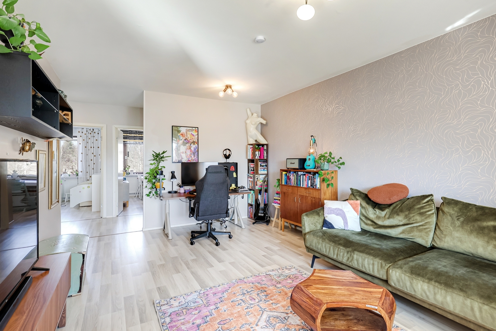 Detta vackra trerumslägenhet passar utmärkt både för den lilla familjen och för dig som behöver utrymme för distansarbete !