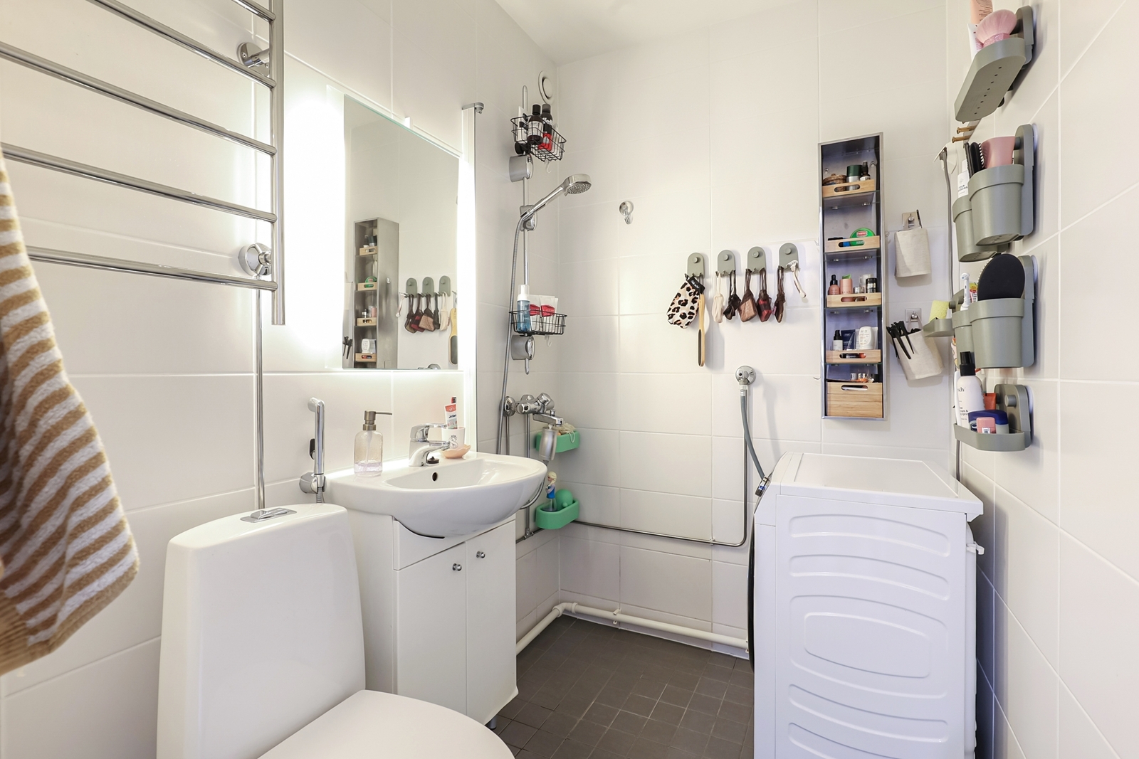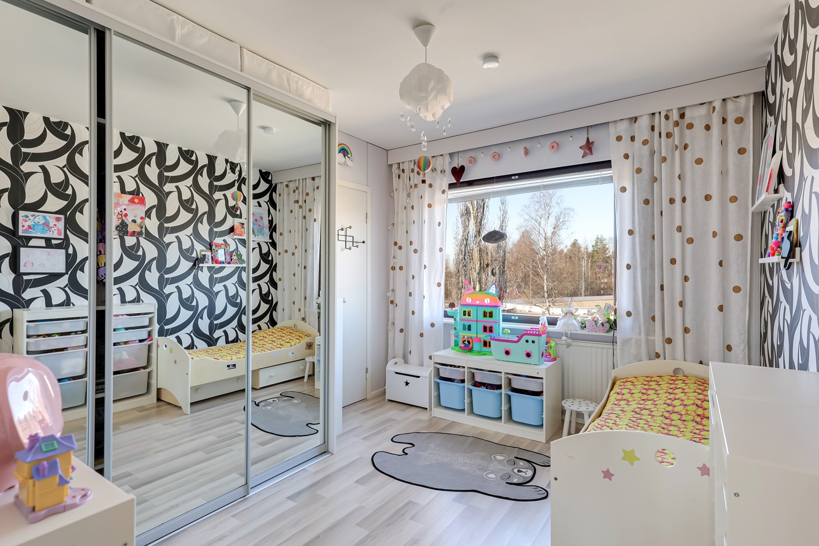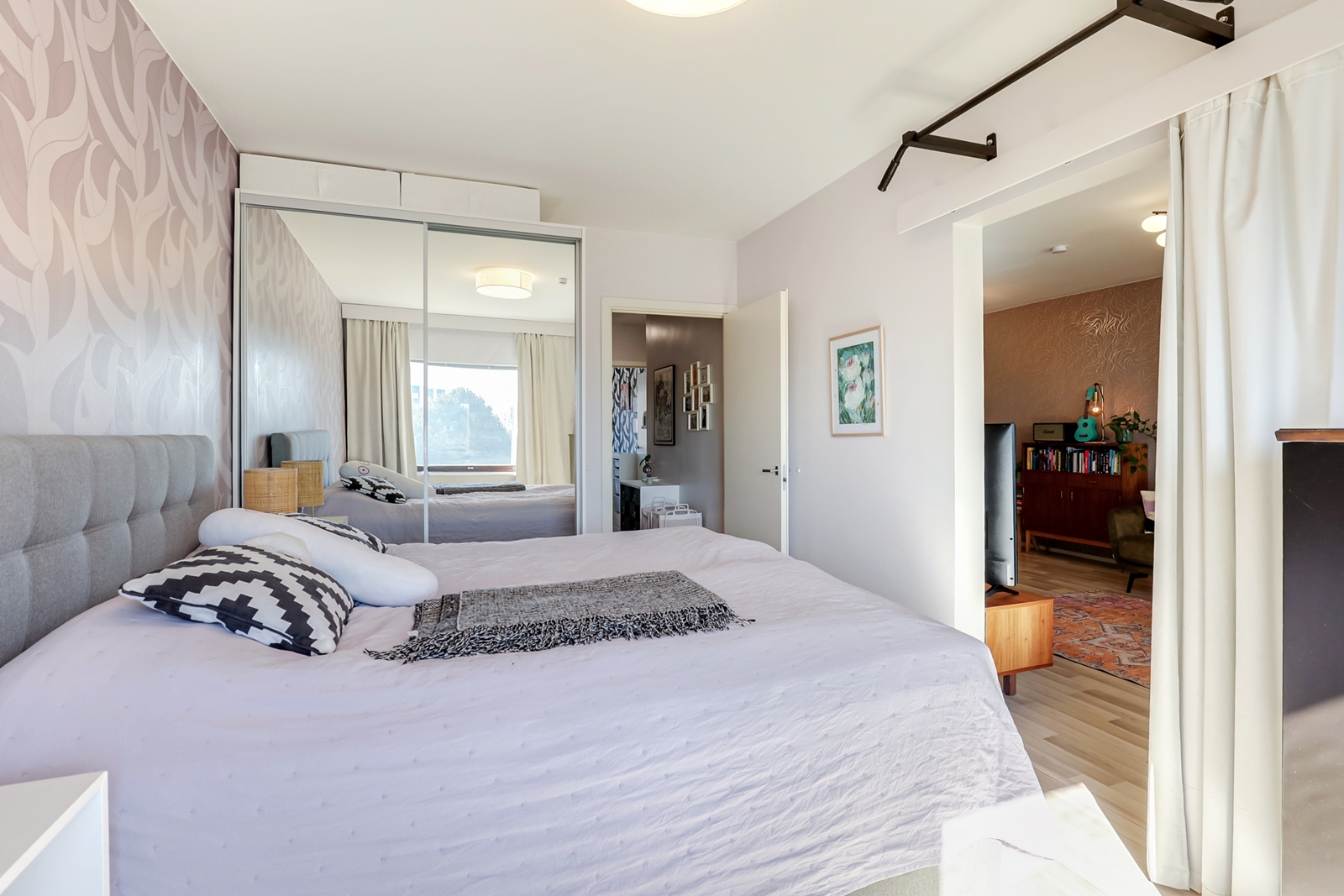 Asunnossa on tilavat makuuhuoneet, soveltuen eri elämäntilanteisiin. Säilytystilaa on hyvin, löytyy sekä kaapistoja että vaatehuone. Kodin harmoninen tyylikkyys jatkuu kauniissa kylpyhuoneessa, jossa jokaiselle toiminnolle on oma looginen paikkansa sekä tilaa pyykinpesukoneelle.