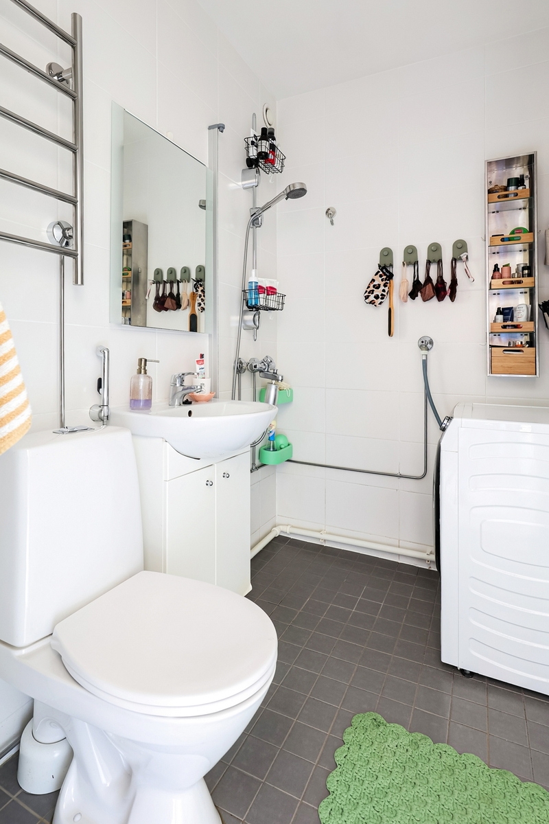 Lägenheten erbjuder rymliga sovrum som passar olika livssituationer. Förvaringsutrymmena är goda med både garderober och klädkammare. Hemmets harmoniska stil fortsätter i det vackra badrummet, där varje funktion har sin naturliga plats samt utrymme för tvättmaskin.