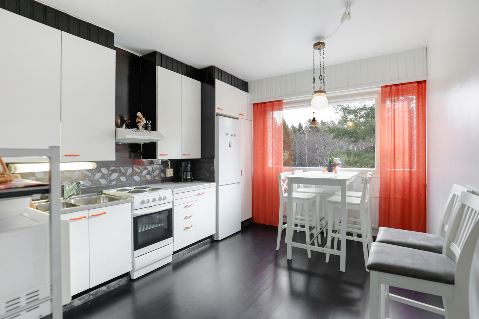 - Tässä keittiössä on erinomaiset mahdollisuudet toteuttaa omia ideoita ja luoda juuri oman näköinen kokonaisuus. Pienellä päivityksellä keittiöstä saa myös todella viihtyisän.