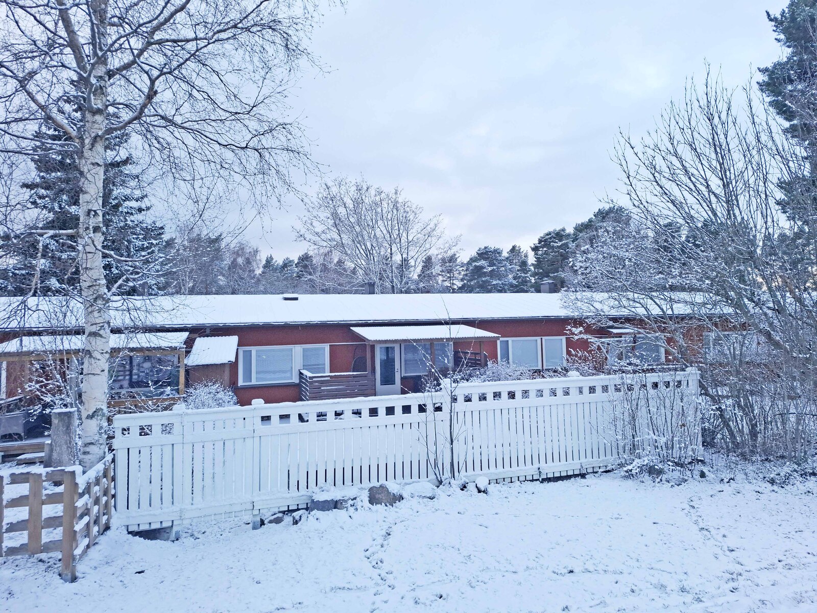 Badrummet är kompakt men välplanerat – allt nödvändigt får plats, inklusive utrymme för tvätt. Förvaringsmöjligheterna är goda med både klädkammare, garderober i hallen och förvaring i sovrummet. Helheten fulländas av den skyddade terrassen på baksidan, varav den ena delen är täckt.