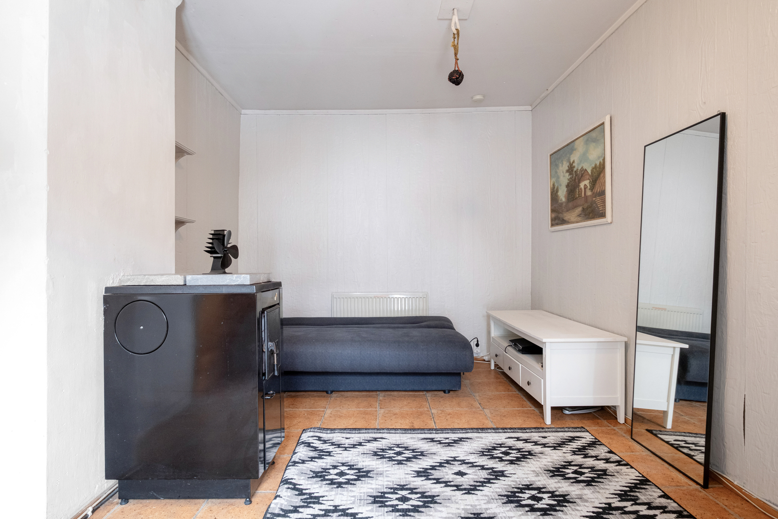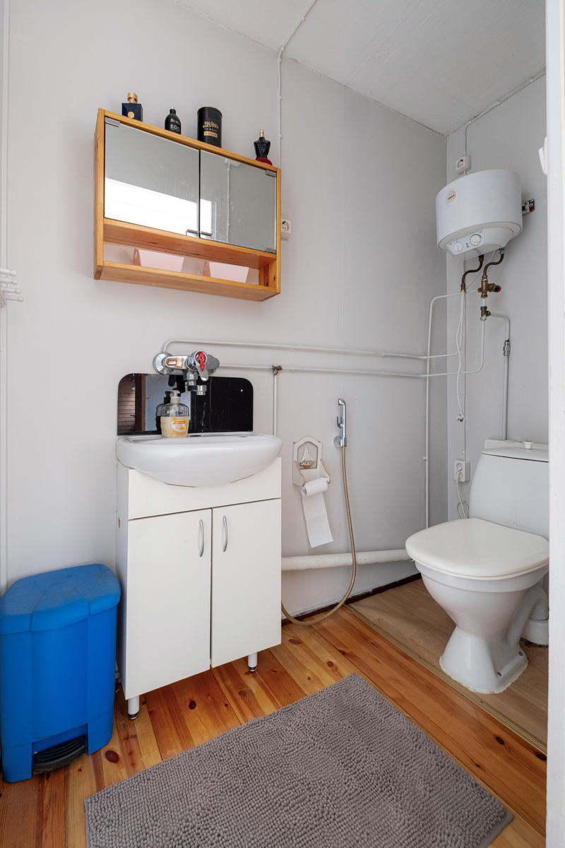 Köket i hemmet charmar med sin praktiska utformning. Det finns gott om förvaringsutrymme, och vardagen underlättas av ett separat frukostskåp samt en stämningsfull vedspis. Det rymliga vardagsrummet fungerar som hemmets hjärta, där en öppen spis och en luftvärmepump bidrar till både komfort och energieffektivitet året runt.