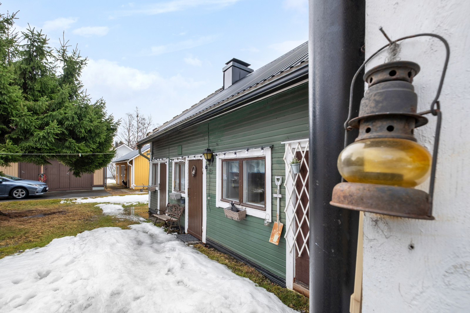 Helppohoitoinen piha-alue tarjoaa viihtyisän ympäristön oleskeluun. Piharakennus tuo lisäarvoa monipuolisilla tiloillaan. Käytössä on oma makuuhuone, tupa, wc sekä perinteinen puusauna. Piha-alueella on hyvin tilaa autoille, ja lisäksi käytössä on autotalli.