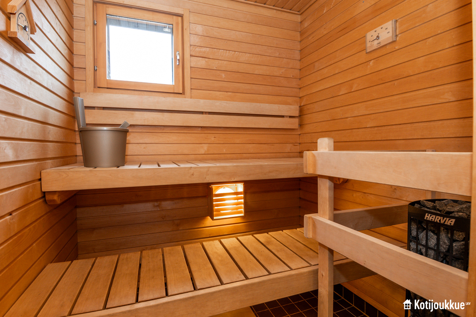 Dessutom finns två rymliga sovrum, egen bastu och ett funktionellt badrum med plats även för tvättutrustning. En separat toalett underlättar vardagen.