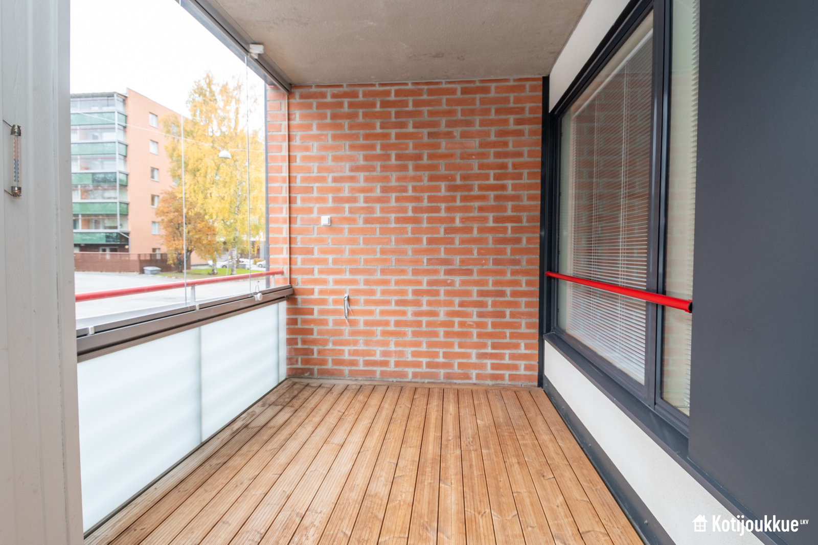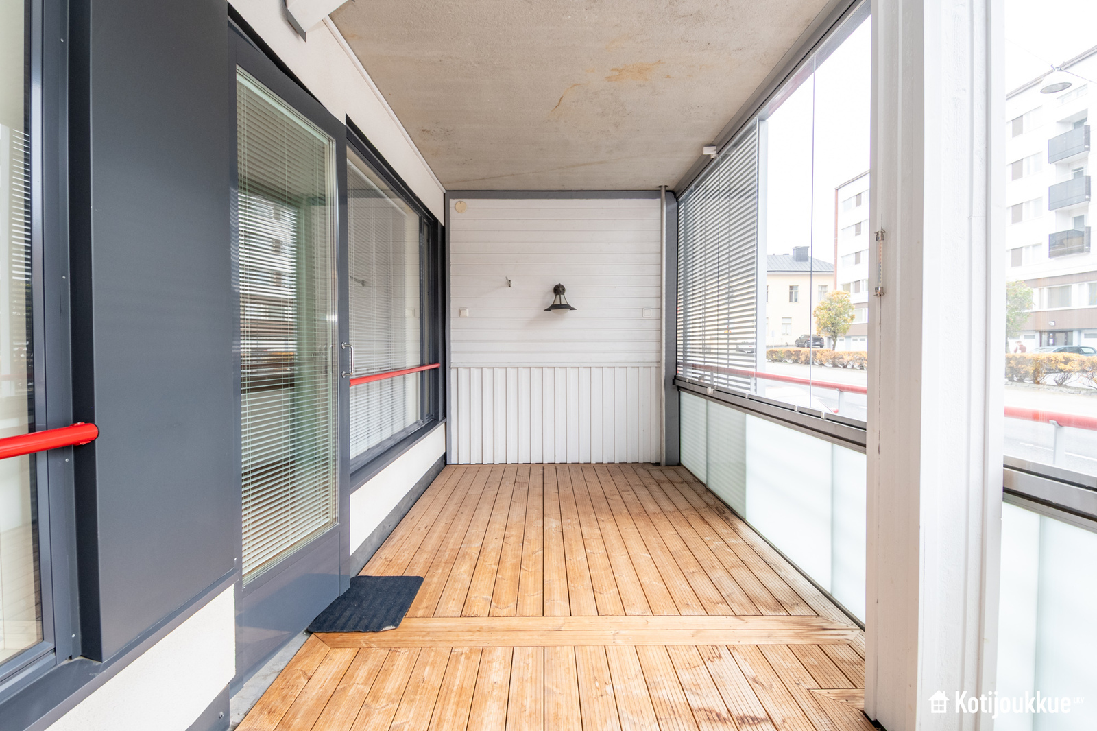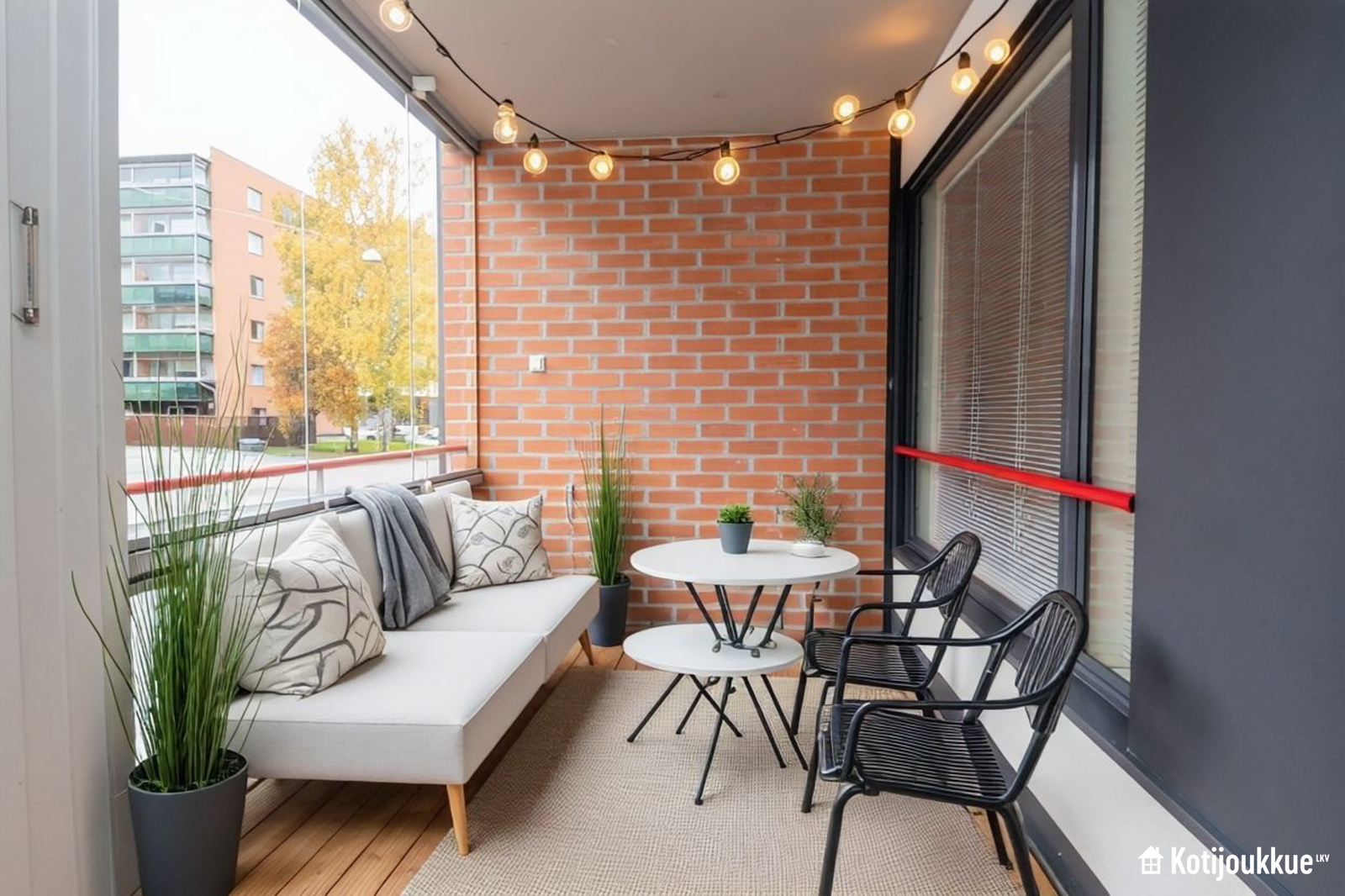 Tämän kodin kruunu on ehdottomasti iso lasitettu parveke, joka tuo lisätilaa asumiseen aikaisesta keväästä myöhäiseen syksyyn saakka. Tänne mahtuu kivasti nauttimaan aamukahvit tai perustamaan ruukkuviljelmät tai ihan vain viettämään aikaa, mikä luo asumiseen hyvinkin rivitalomaisen tunnelman.