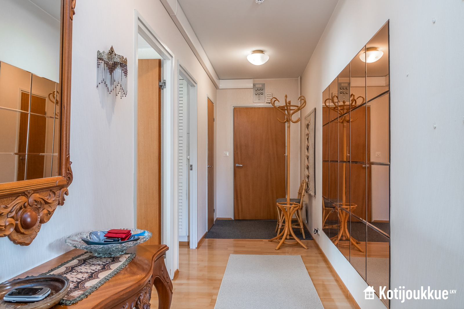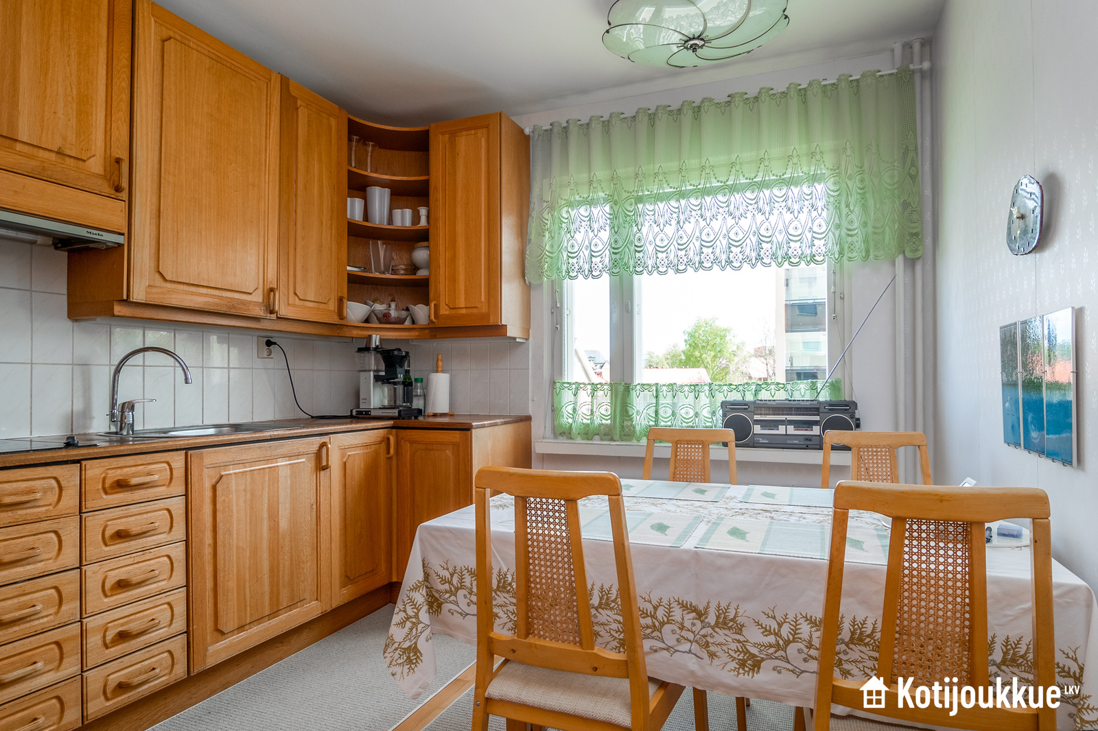 I köket finns gott om avställningsyta och skåputrymme. I anslutning till köket finns också gott om plats för ett matbord. Stort och ljust vardagsrum där man kan tillbringa härlig tid med både familj och vänner. Vardagsrummet fortsätter smidigt ut på balkongen som fungerar som ett extra rum under sommaren. Också sovrummen är rymliga och lätta att möblera utifrån familjens livssituation.