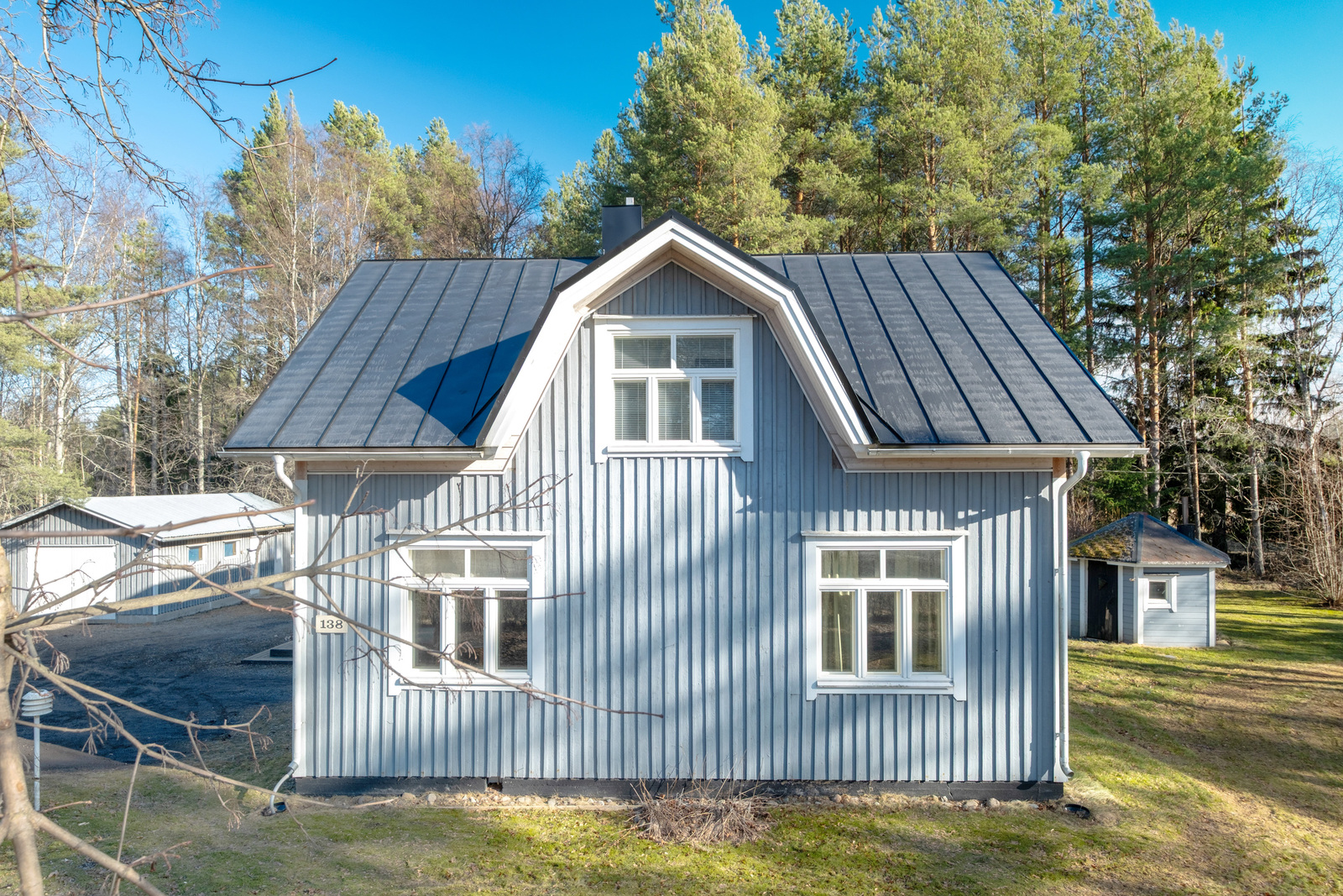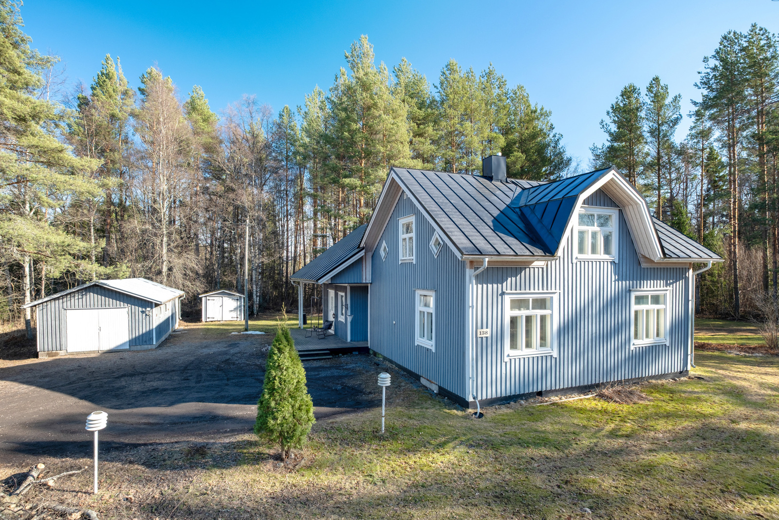 Tämä kaunis omakotitalo hurmaa ensi silmäyksellä ajattomalla ilmeellään ja sopivalla pihapiirillään. Vaaleansininen julkisivu, siistit valkoiset yksityiskohdat ja peltikatto luovat harmonisen ja kutsuvan kokonaisuuden.