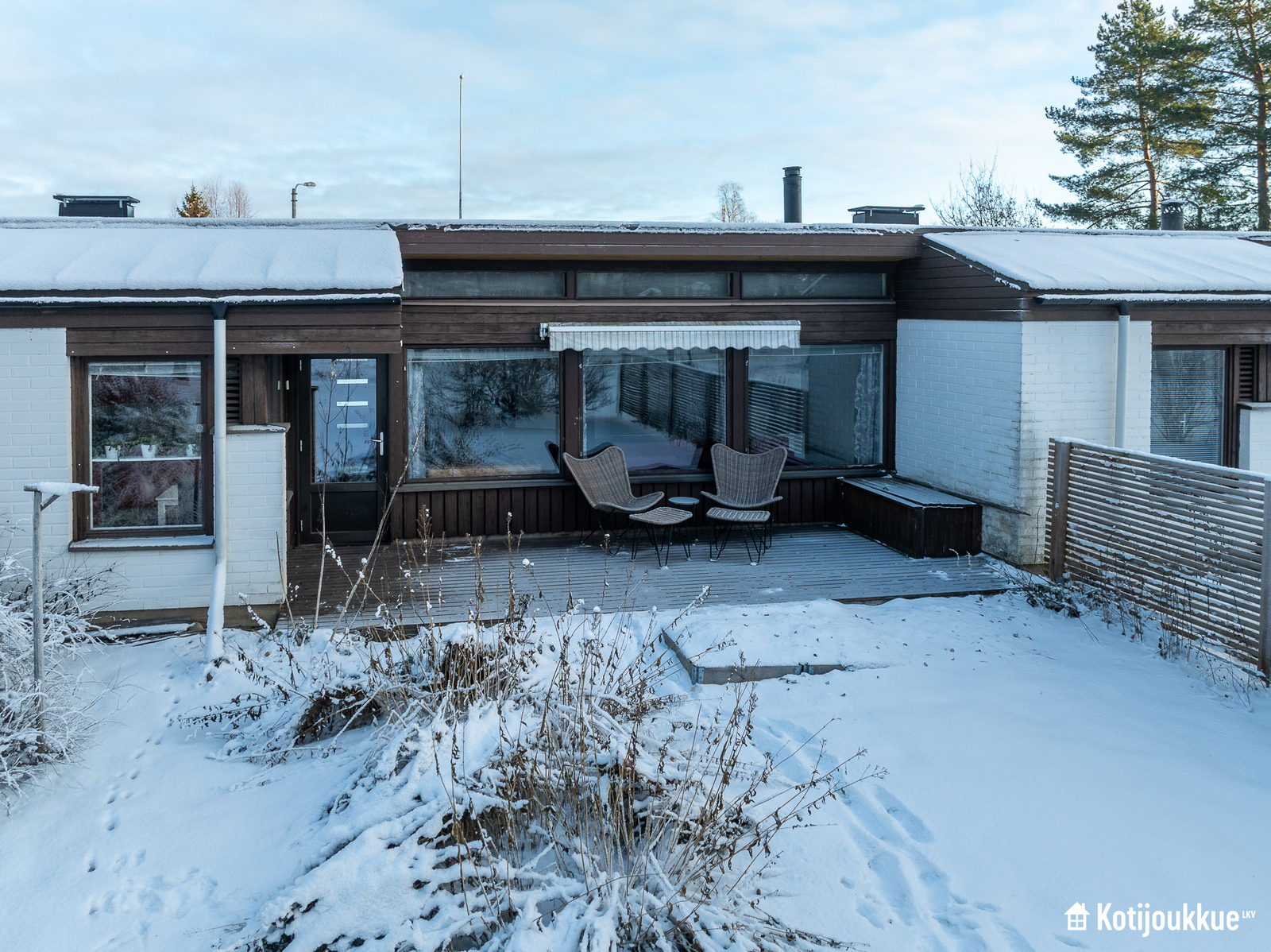 Vuonna 1971 rakennettu rivitalo on kodikas ja pihapiiri on rauhallinen. Hyvin hoidettu taloyhtiö, jossa tehty paljon remontteja 2000-luvulla, kuten salaojat ja uusi lämpökeskus 2006-2007, katto uusittu 2017 ja vesiputket 2024. Lämmitysmuotona edullinen ja huoleton kaukolämpö. Yhtiöllä on oma tontti ja autoakaan ei tarvitse kaivaa aamuisin lumen alta, sillä kaikille asunnoille kuuluu oma autokatospaikka asunnon sisäänkäynnin yhteydessä!