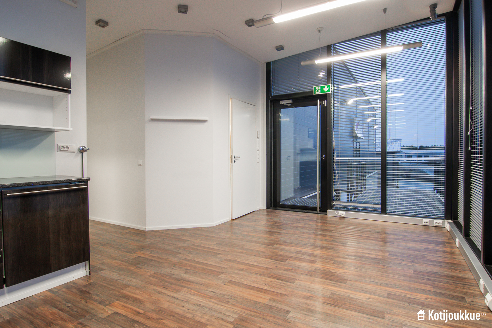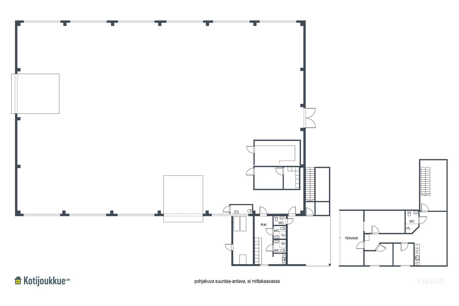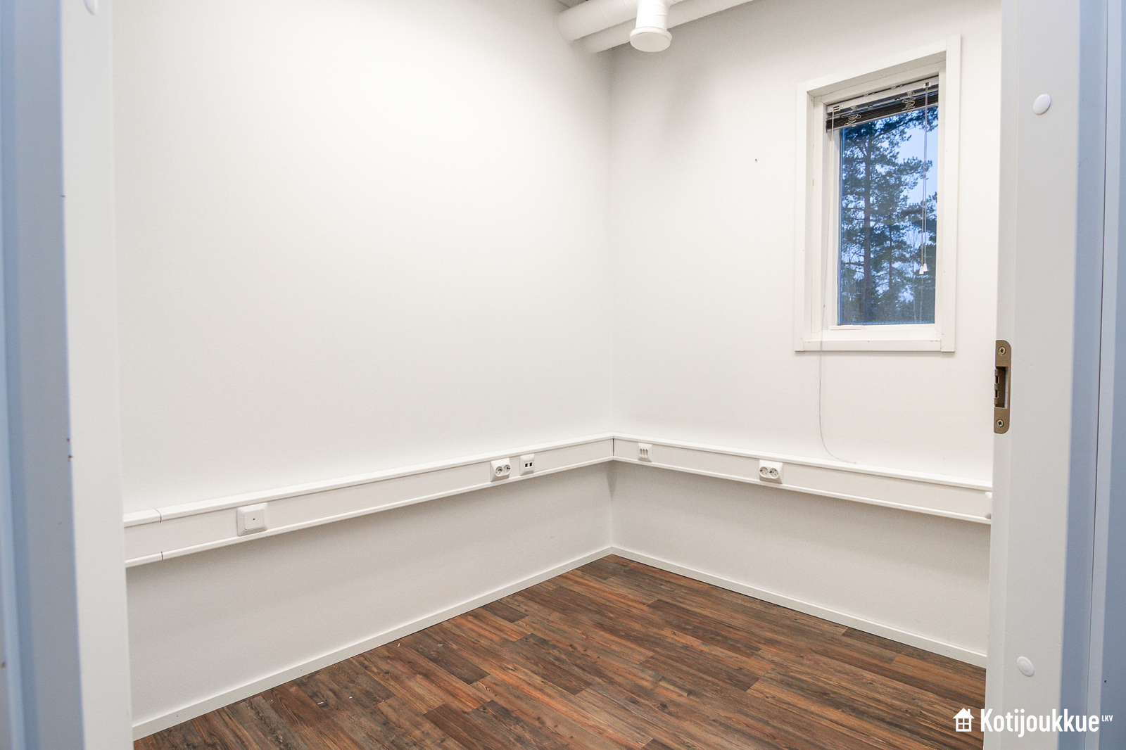 - Yläkerroksessa toimistotiloja ja kokoustila, keittonurkka wc.
