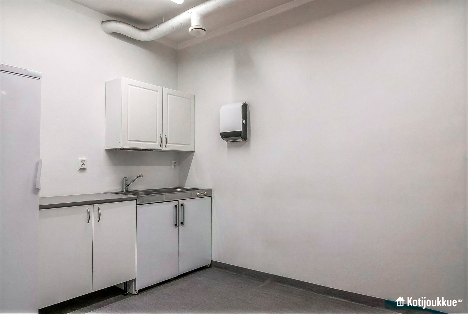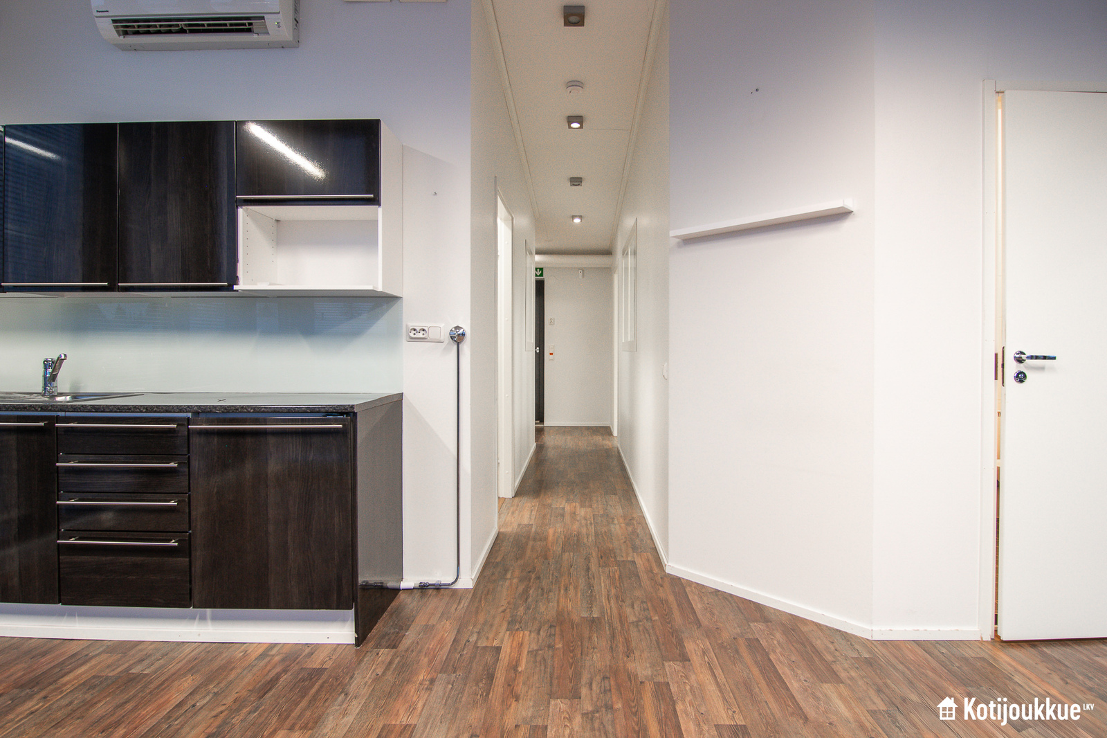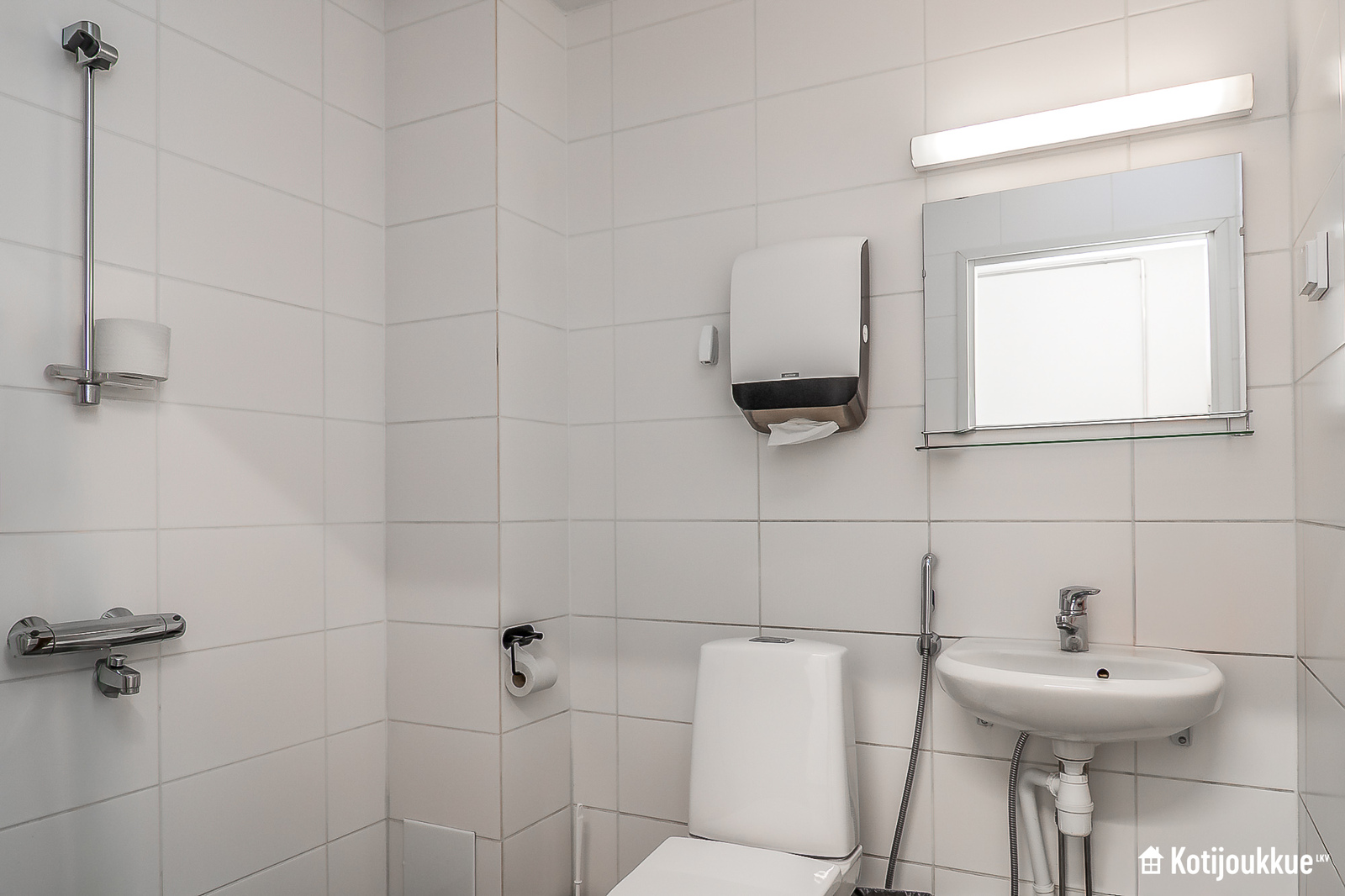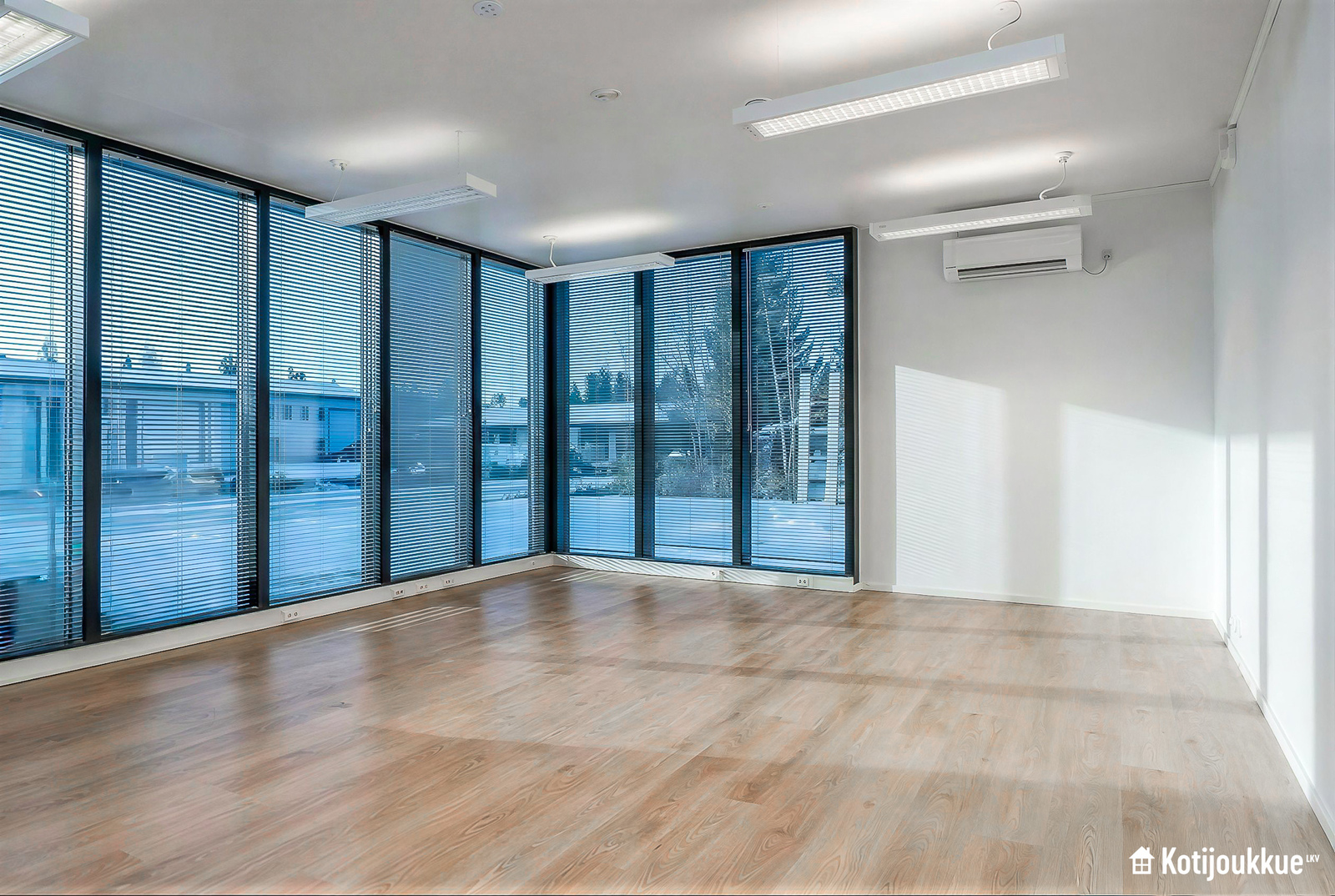 - Yläkerroksessa toimistotiloja ja kokoustila, keittonurkka wc.