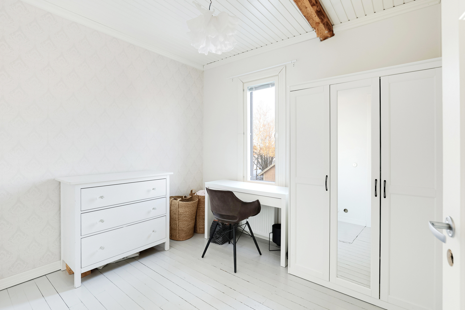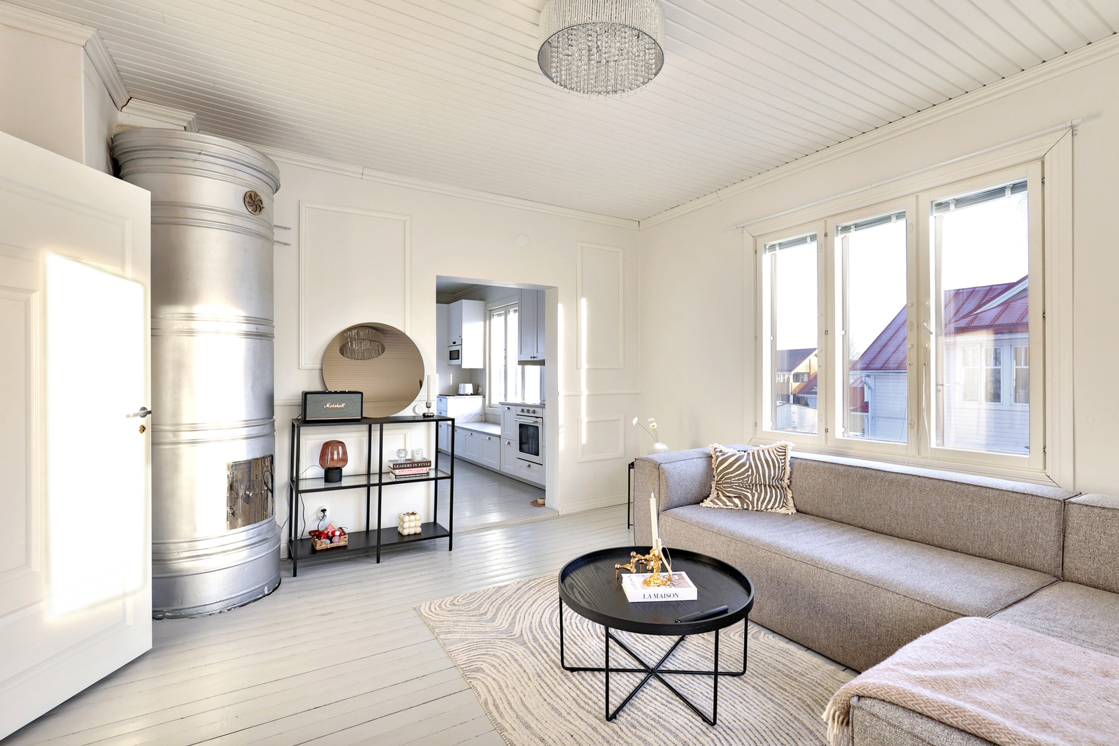 Bostaden har en unik och stämningsfull atmosfär som genast får en att stanna upp, beundra och börja drömma om att bo här. Denna förtjusande bostad ligger på andra våningen och har totalrenoverats med god smak för att motsvara dagens boendebehov. Ytskikten har renoverats med respekt för husets historia, vilket bland annat syns i de framtagna stockväggarna i kombination med vackra trägolv.